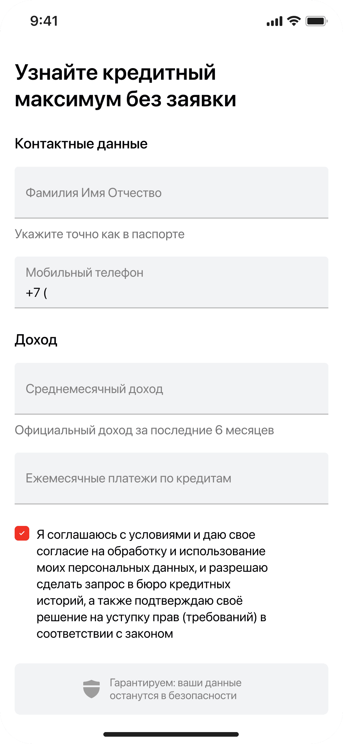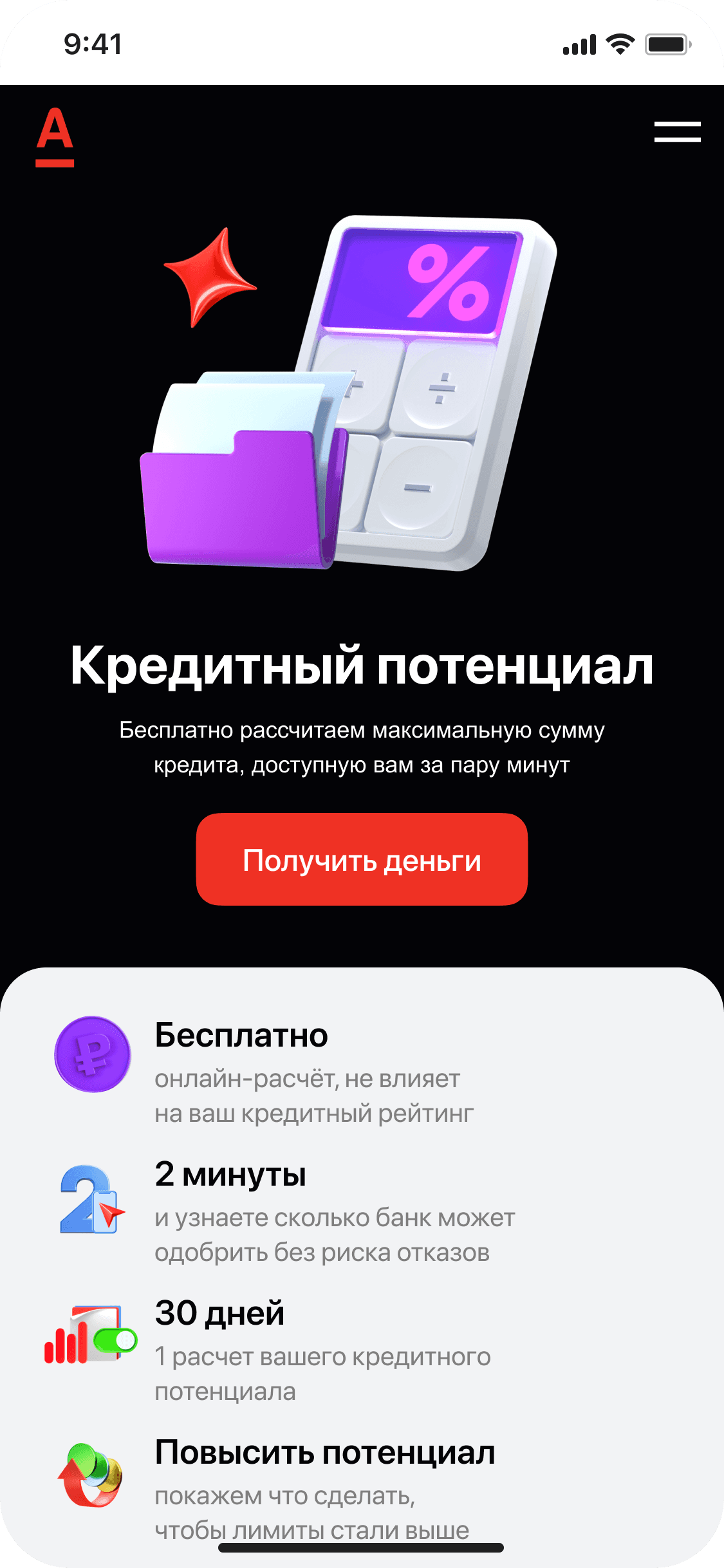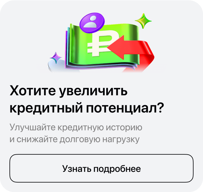 Если на странице «Получение кредита» добавить баннер и объяснить «Кредитный потенциал», то пользователи будут чаще увеличивать сумму заявки и увереннее подавать заявки на кредит