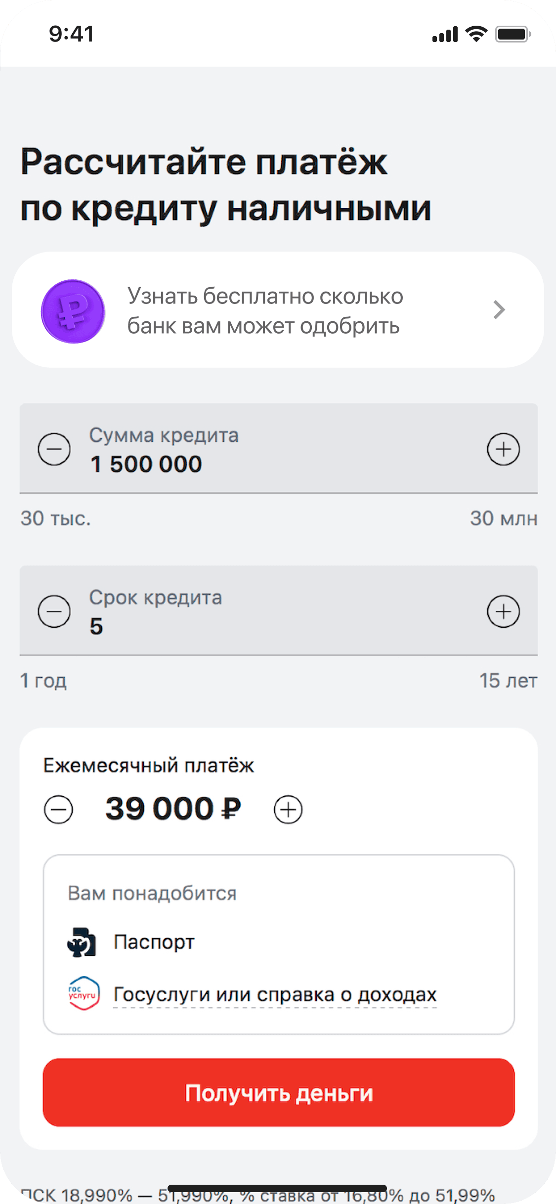 Редизайн страницы «Кредит наличными»