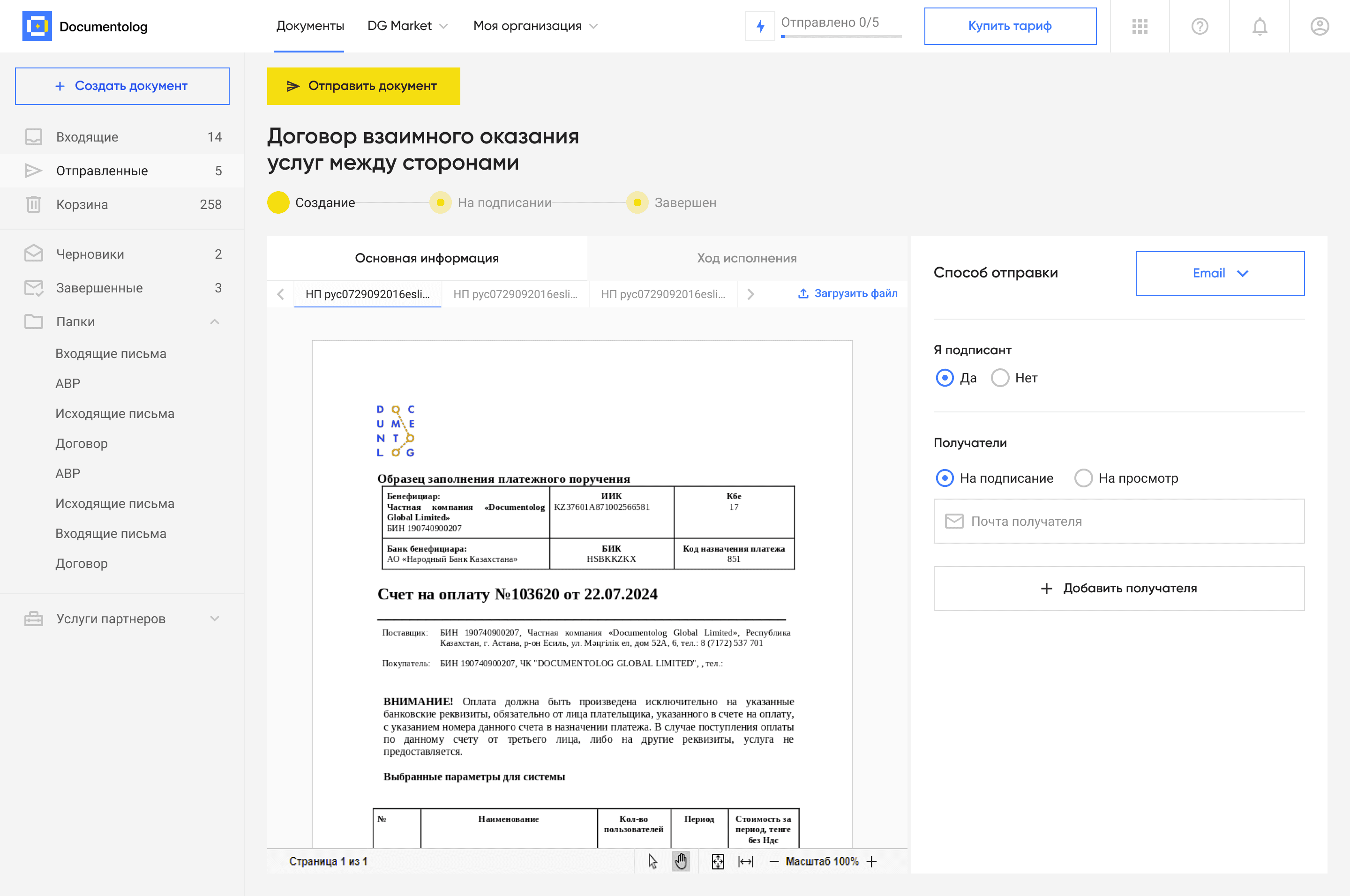 и отправлять на подписание или на ознакомление ЮЛ, ИП, ФЛ